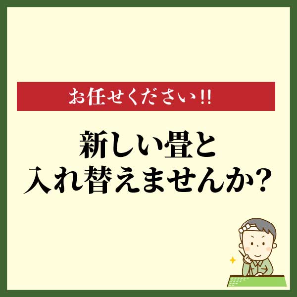 明治時代創業・4代目のプロが、あなたの畳の張替作業を1つ1つ丁寧に仕上げます。気になる事がございましたら、是非、ご相談ください。