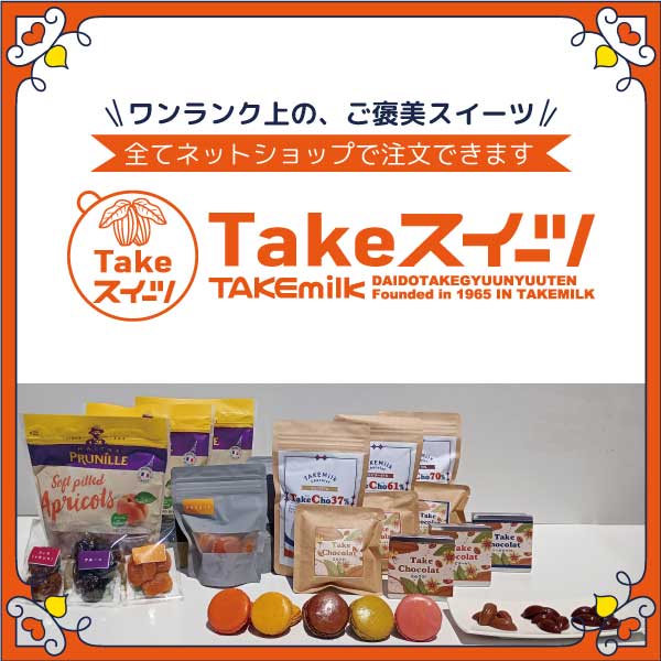 たけみるくオリジナルのチョコレート!TakeChoは希少性の高い南米のカカオ豆を使用し一切、余計な原料を混ぜず、長時間のコンチング技術を持ったフランス製のチョコレートです。